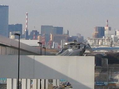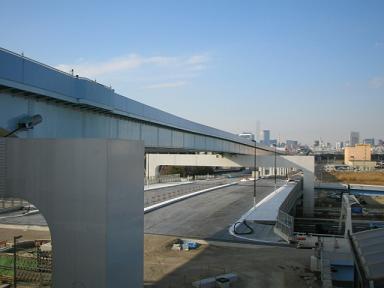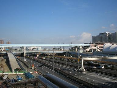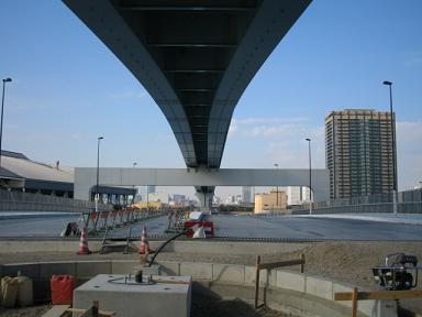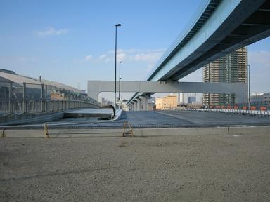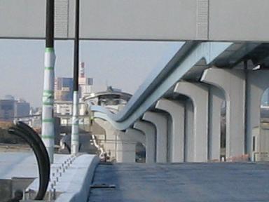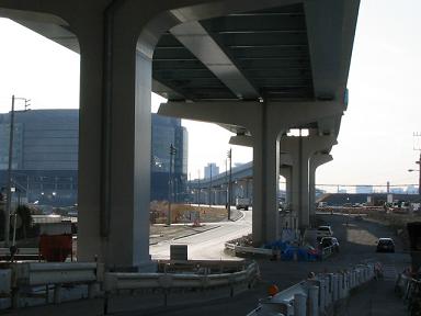 | 有明駅方面を見ています。 | 首都高湾岸線を超える部分。右側が有明駅。 |