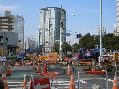 | 豊洲駅 | 有楽町線連絡口の工事 後ろの高層ビルは石川播磨重工業の新社屋です。 |