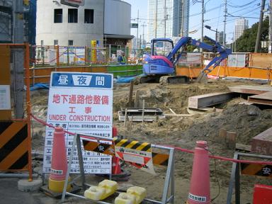 | 大型重機が入って工事も佳境にはいっているようです。 | 地下通路他整備工事となっています。 |