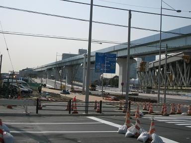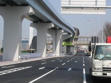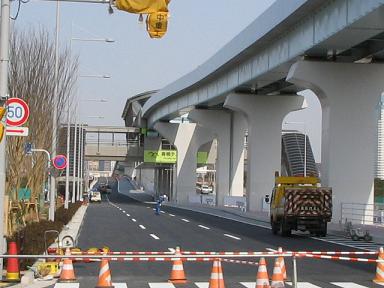 開業までいよいよあと1週間にせまり、周辺の工事も最終段階にさしかかりました。ゆりかもめに沿って建設中の道路は一足早く3月25日(土)16時に開通します。