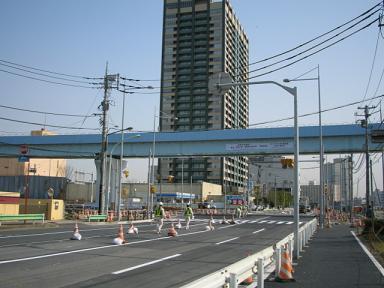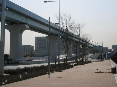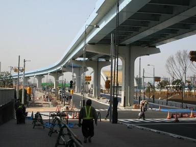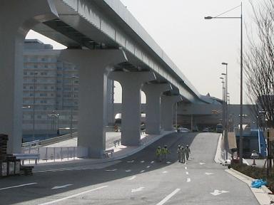 | 有明テニスの森側から有明駅方面を見ています。 | 下の道路も開通を待つばかりとなっています。 |