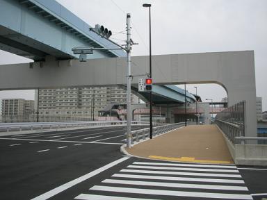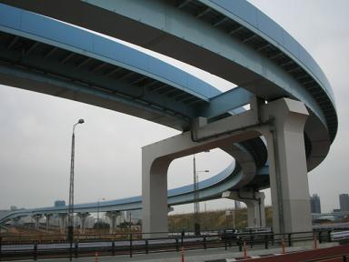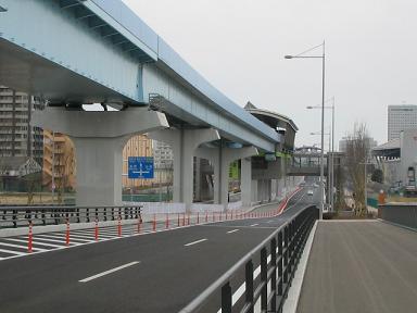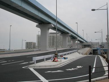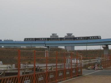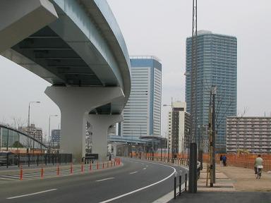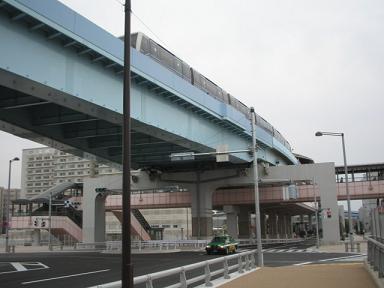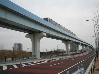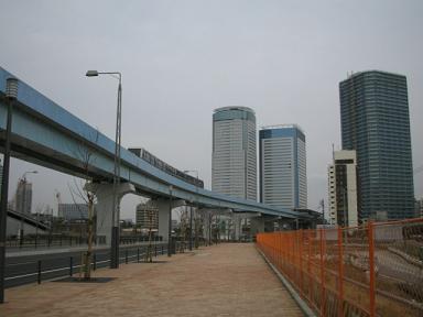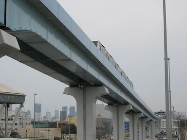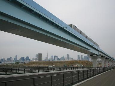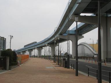 | 奥が有明駅です。ここで首都高速湾岸線を越えるため 大きなビームがあります。 |