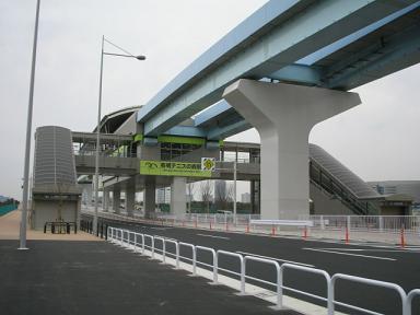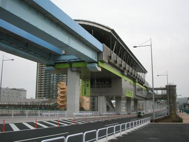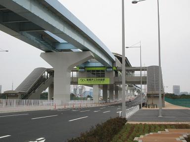 | 有明北橋を越えると有明テニスの森駅になります。 | 有明テニスの森駅 市場前側から見ています。 |