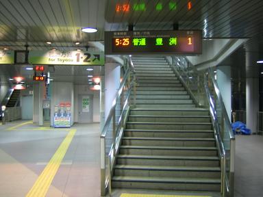 | まだ夜明け前の有明駅 | 一番列車は有明5時25分発豊洲行になります。 |
