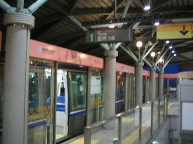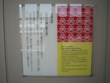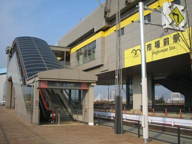 | 市場前駅の文様 「変わり縞に蟹文様」 | 市場前駅に到着するゆりかもめ7000系4次車 |