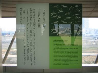 | ホームの様子 | 有明テニスの森駅の文様 「干潟に水鳥文様」 |