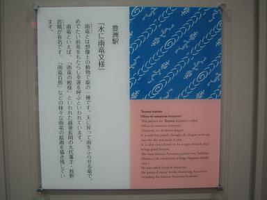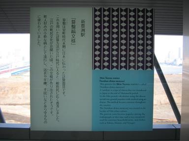 | ホームの様子 | 新豊洲駅の文様「算盤縞文様」 |